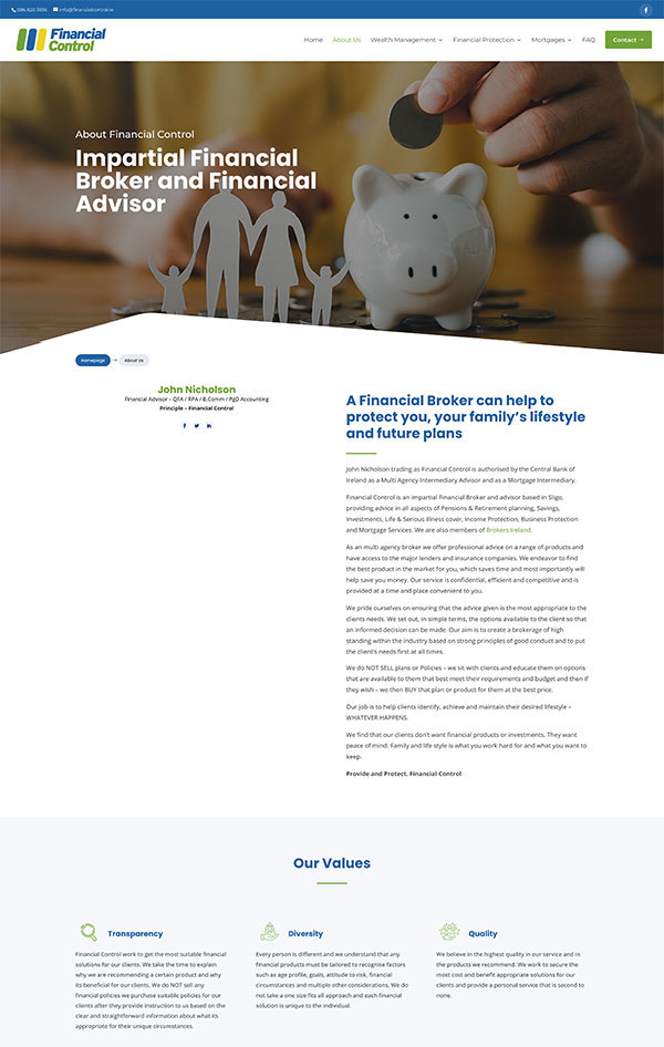 We created a visually appealing website which incorporated the brand colours and a simple CMS system which allowed Financial Control to manage content and keep the website updated.
