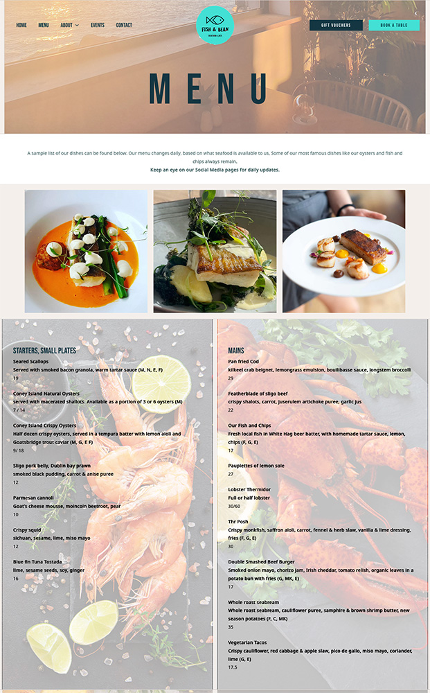 We worked with Aíne and the team to create content an select images which gave an accurate insight into the philosopy and location of Fish & Bean and created analytics accounts to monitor website usage patterns.