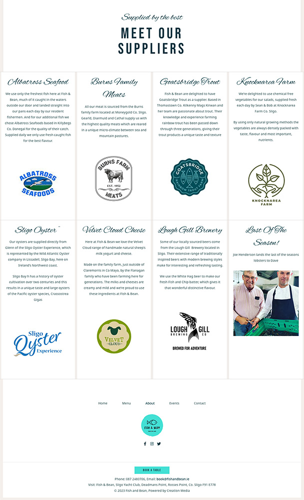 Creation Media were asked to create a website which showcased the award winning food produced at Fish & Bean and the producers and team.
