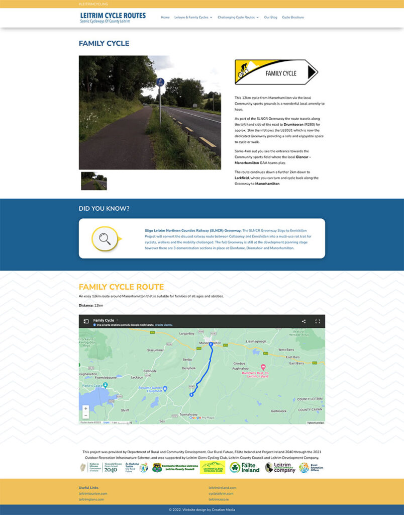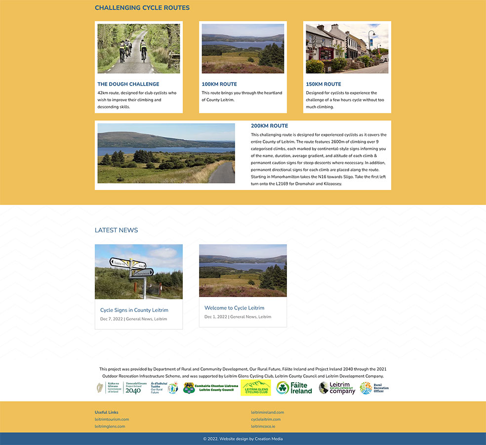 Leitrim County Council in Partnership with Leitrim Glens Cycling Club engaged Creation Media to create a responsive website and complimentary brochure which provided written information and route maps.