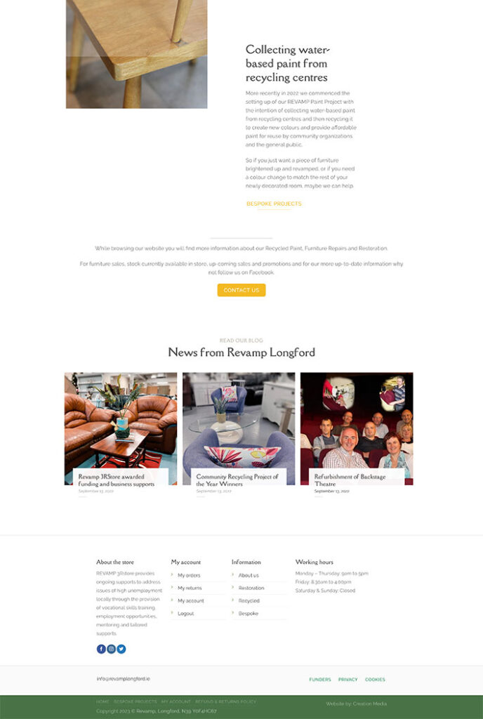 Revamp are a community organisation based in Longford who upskill individuals in furniture restoration and upcycle old pieces of furniture for reuse and resale.